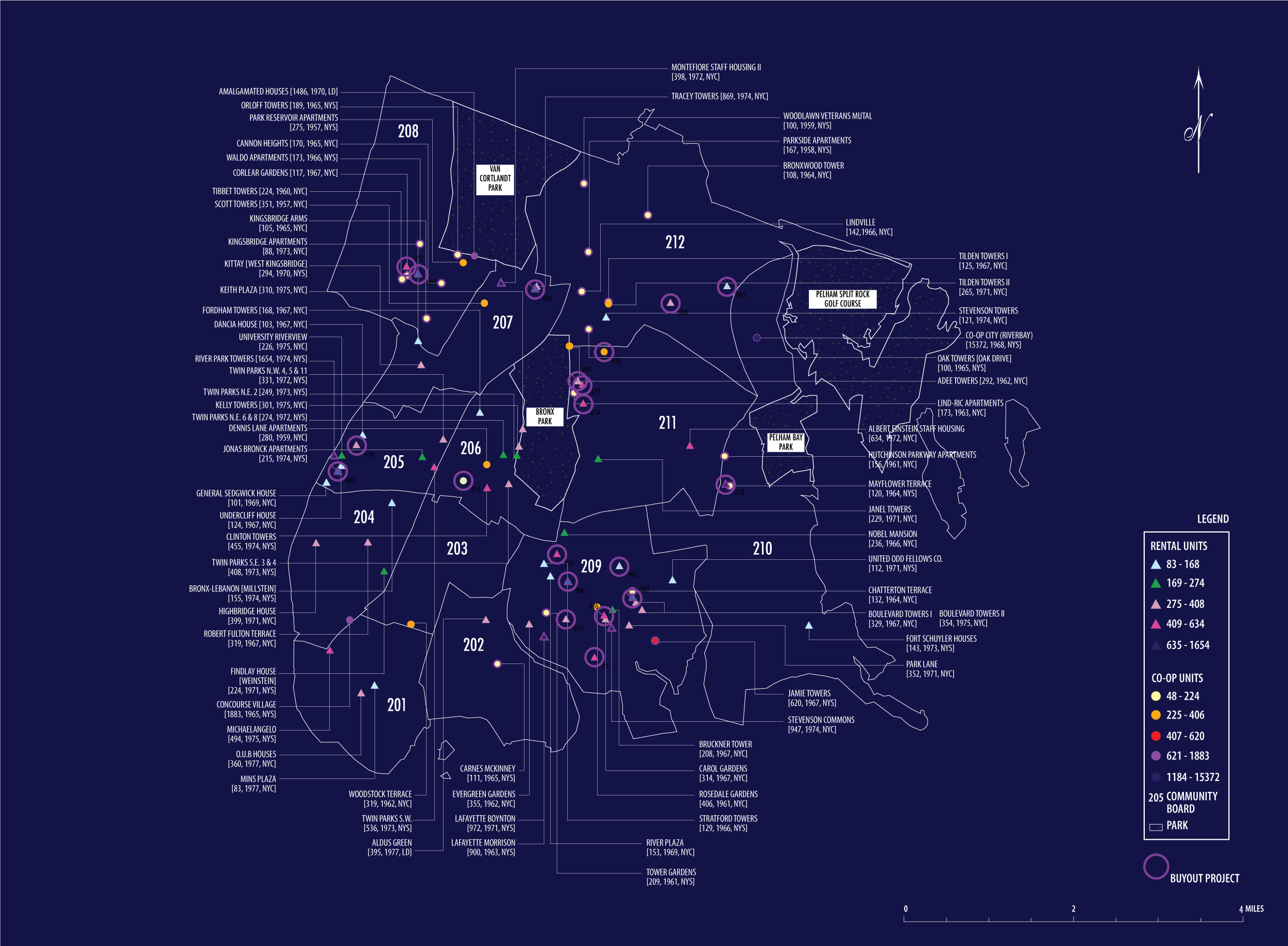 WORKING THE MIDDLE - A Revival was a systematic, elemental inventory and analysis of the architecture of low-moderate income housing erected under the Mitchell-Lama housing scheme since the program’s inception in 1955 until it’s last development was constructed in1975. A form of invisible architecture - merits concealed from public knowledge and architectural discourse - the nearly 300 works, chiefly adorned in a brutalist aesthetic, are a body of work attributable not to a sole architect or practice, but to a piece of legislation. Enacted statewide, Mitchell-Lama granted tax abatements and subsidized mortgages to developers for the construction and maintenance of low-moderate income rental and co-op properties, affording developers the option to opt out upon repayment of the mortgage or after 25-30 years. In the wake of a revival of political will and interest in middle income housing, including proposals for the rebirth of Mitchell-Lama and renewed interest and adoration of brutalism, this inventory is an architectural accounting of the stock on hand. It is an unprecedented, retroactive act of design, documenting and drawing out purpose, potential and intent. Regarded as found objects or ready-mades, this work will identify, document and catalog fundamental components, establishing grounds for analysis of relationships among them; inventorying: the organization, articulation and size of corridor, stairway, elevator, window type, unit size, ceiling height and type, building height, proportion of building floor plate, ratio of glazing to solid wall [fenestration ratio], incorporation of support program, and others. Review in mass, as opposed to individually interesting works, changes the scope of vision, unearthing potential for transformation of existing works, while carving out a critical space for speculation on future development and design of low-moderate income housing erected under a revived Mitchell-Lama housing scheme.